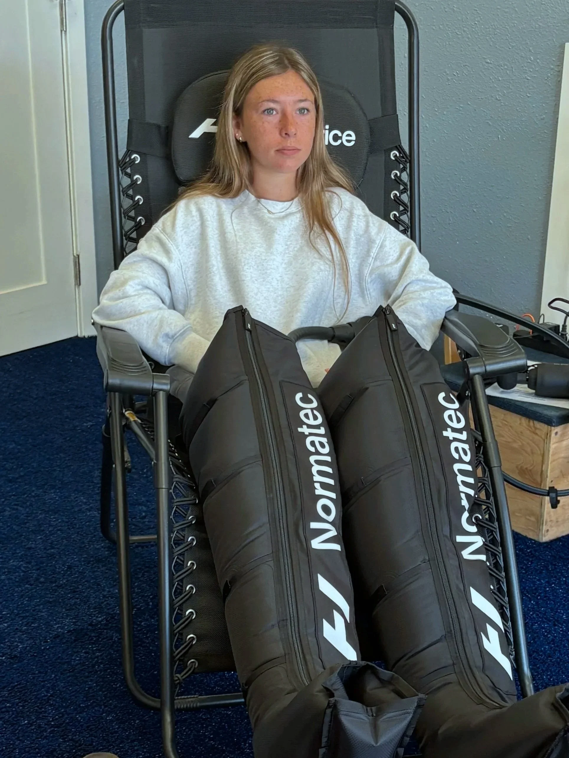 Normatec compression therapy uses dynamic air pressure to enhance circulation and support muscle recovery following training or competition. By promoting venous return and reducing muscle fatigue, compression sleeves help decrease soreness, swelling, and recovery time. Normatec sessions are ideal for athletes looking to recover faster, maintain training consistency, and support long-term performance.